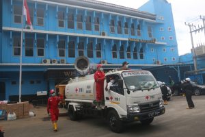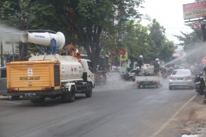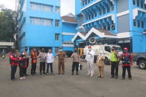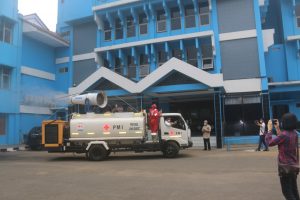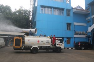 Sekretari PMI Provinsi Jawa Barat Kombes Pol. Purn Ruhanda., S.E., M.Si mengatakan, aksi penyemprotan disinfektan ini mengerahkan satu truk Gunner yang diisi 5.000 liter disinfektan,